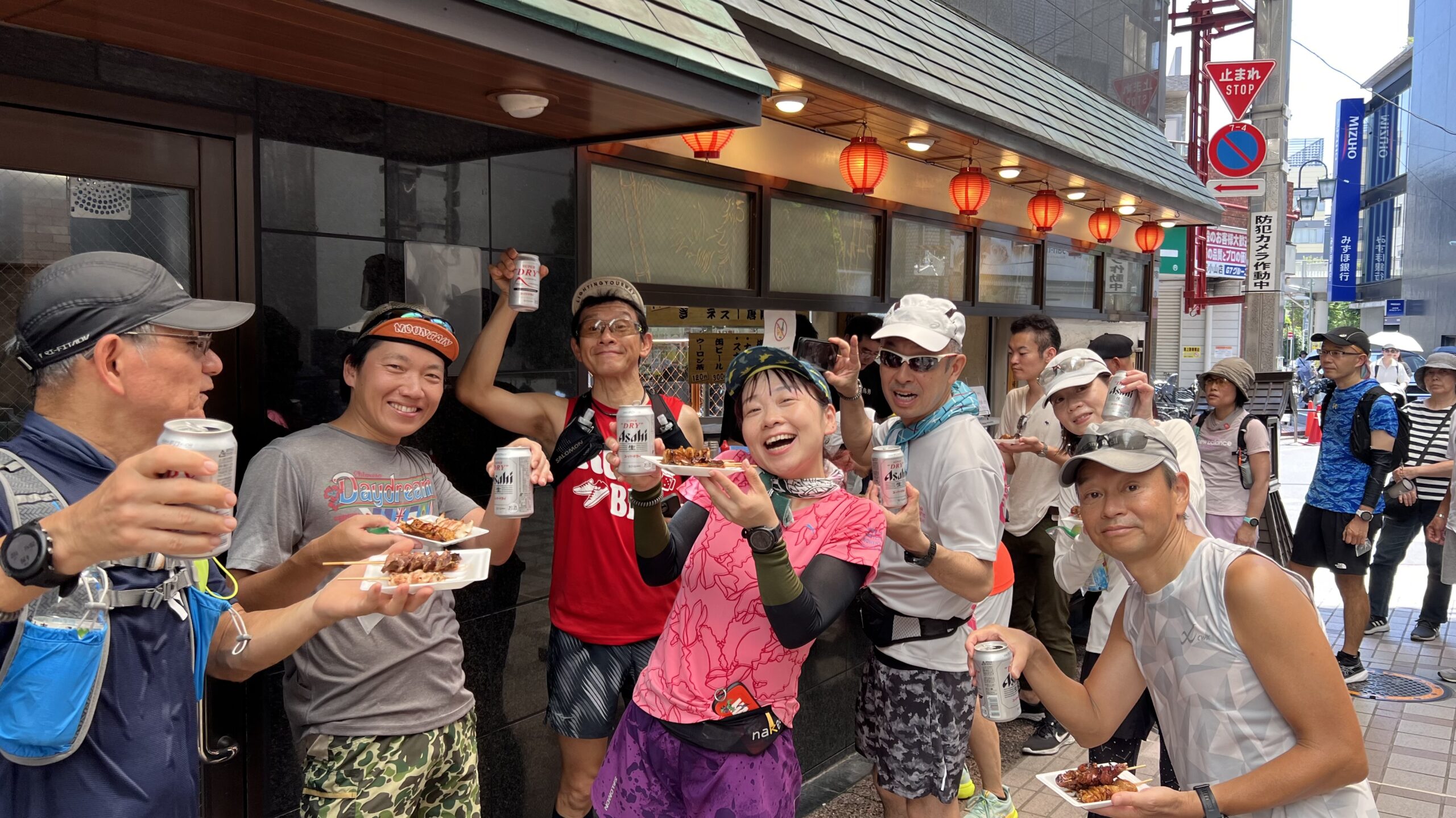 走る途中で、目の前で焼き上がる焼き鳥を食べる幸せよ。
